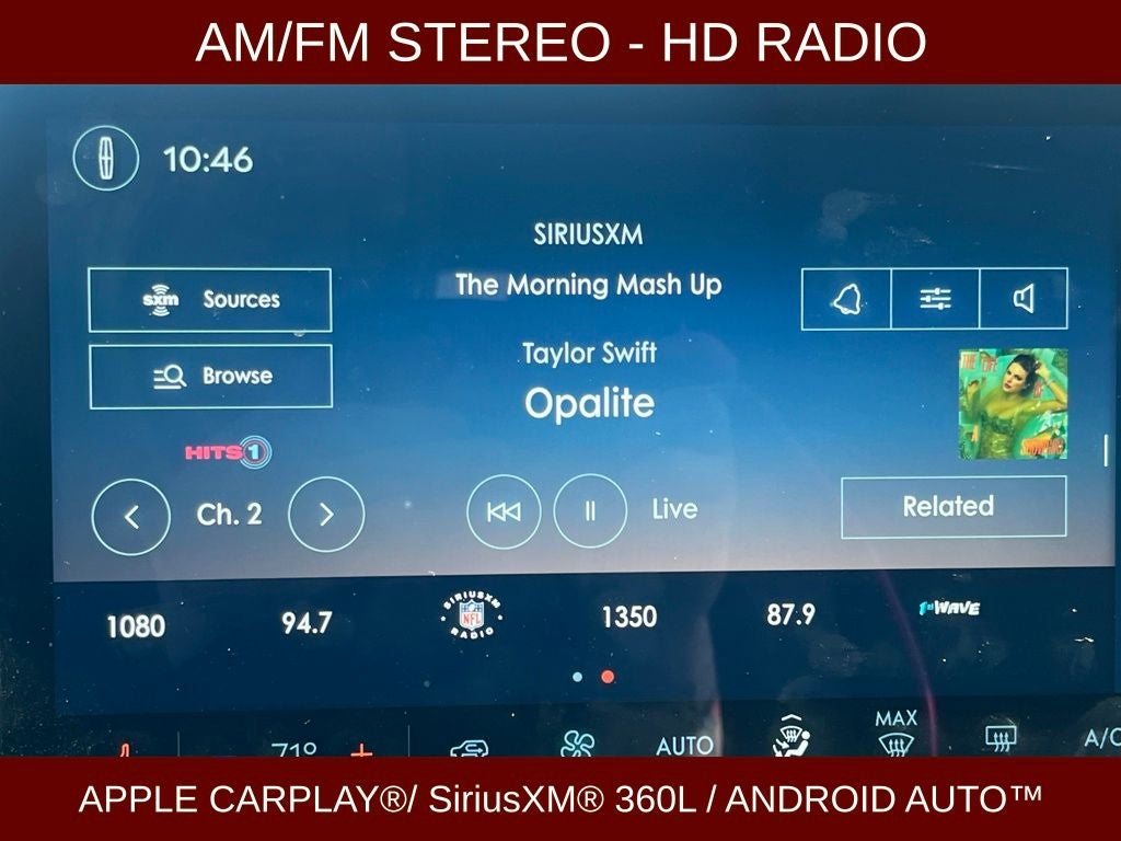 - Radio: Lincoln Premium Audio System w/MP3 -inc: AM/FM, 10 speakers including subwoofer and voice-activated touchscreen navigation system w/pinch-to-zoom capability (3 year subscription)