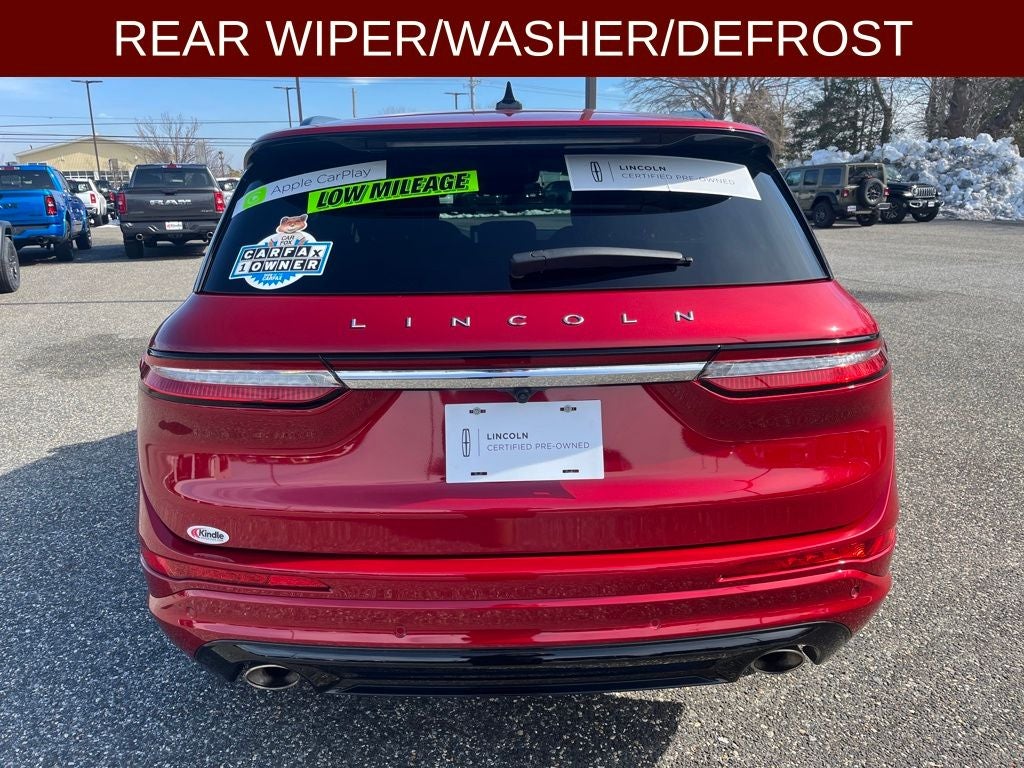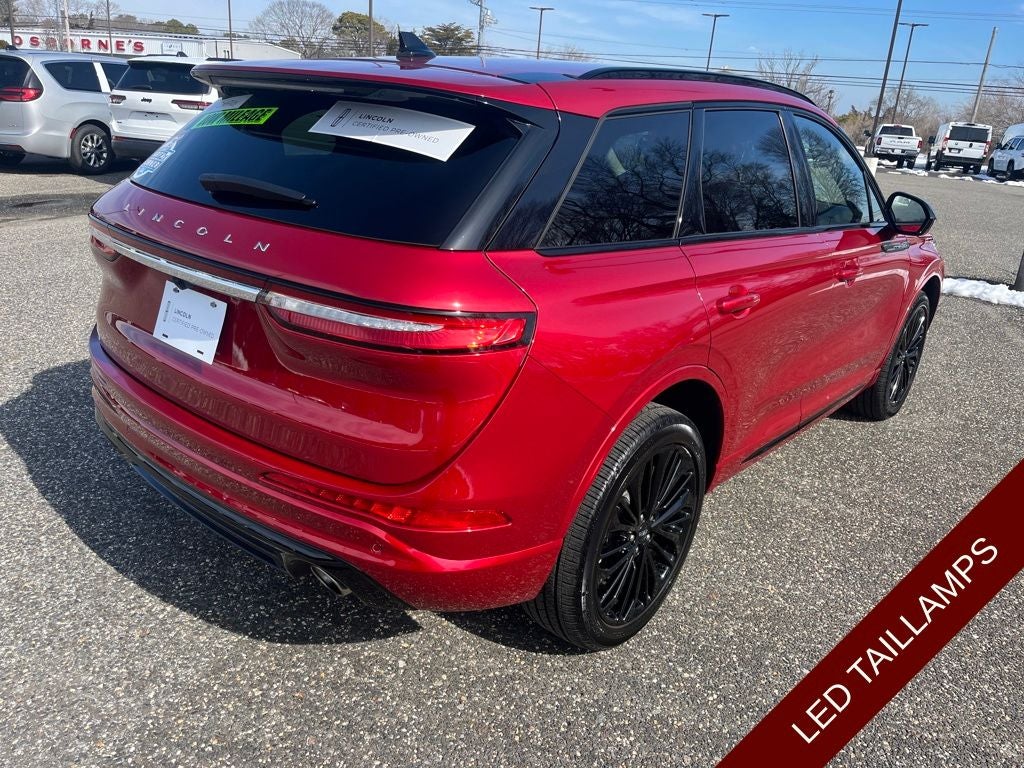 2023 Lincoln Corsair Reserve in Red Carpet Metallic Tinted Clearcoat vehicle highlights include.., LINCOLN CERTIFIED, 1 OWNER, CLEAN CAR FAX, AWD, VOICE ACTIVATED NAVIGATION w/TOUCH SCREEN, BLIS W/CROSS-PATH PROTECTION, REAR VIEW CAMERA w /REVERSE SENSING, ADAPTIVE CRUISE CONTROL, PRE COLLISION ASSIST W/AEB, LANE KEEPING, DUAL AC, INTELLIGENT ACCESS W/PUSH BUTTON START, REMOTE KEYLESS ENTRY, ILLUMINATED ENTRY, AUTOMATIC, AMBIENT LIGHTING, DAY TIME RUNNING LAMPS, LINCOLN DRIVE MODES, 13.2 PREMIUM TOUCH SCREEN, LINCOLN CONNECT, SYNC4 w/ENHANCED VOICE RECOGNITION, FRAMELESS AUTOMATIC REAR VIEW, MIRRORS/HEATED/AUTOFOLD/SIGNAL/DRIVER MEMORY/AUTO DIMMING/APPROACH LIGHTS, QUALITY, MEMORY DRIVER SEAT, POWER SEATS, SPORT SEATS, HEATED SEATS, ADVANCETRAC* W/RSC, LED TAIL LIGHTS, LED JEWELED HEADLIGHTS, CAPLESS FUEL EZ FILL, DUAL EXHAUST w/CHROME TIPS, T.P.M.S., SECURILOCK*, CARGO MANAGEMENT SYSTEM, PARTICULATE AIR FILTER, ROOF RACKS, POWERED LIFTGATE, SOS POST CRASH ALERT, REAR PRIVACY GLASS, ANTI-THEFT SYSTEM, 2.0L Turbocharged, 8-Speed Automatic, 10 Speakers, ABS brakes, Air Conditioning, Alloy wheels, AM/FM radio: SiriusXM, Auto High-beam Headlights, Auto-dimming Rear-View mirror, Automatic temperature control, Body-Color Exterior Elements, Brake assist, Compass, Delay-off headlights, Electronic Stability Control, Emergency communication system: SYNC 4 911 Assist, Four wheel independent suspension, Front anti-roll bar, Front Bucket Seats, Front Center Armrest, Front dual zone A/C, Front reading lights, Fully automatic headlights, Heated door mirrors, Heated front seats, Illuminated entry, Jet Appearance Package, Leather steering wheel, Low tire pressure warning, Memory seat, Navigation system: Connected Navigation (3-year trial), Occupant sensing airbag, Outside temperature display, Overhead airbag, Overhead console, Passenger vanity mirror, Pillar Black Exterior Elements, Power door mirrors, Power driver seat, Power Liftgate, Power passenger seat, Premium Leather Heated Comfort Seats, Radio data system, Radio: Lincoln Premium Audio System w/MP3, Rear anti-roll bar, Rear Parking Sensors, Rear reading lights, Rear seat center armrest, Rear window defroster, Remote keyless entry, Roof rack: rails only, Security system, SiriusXM Radio, Speed control, Speed-sensing steering, Split folding rear seat, Spoiler, Steering wheel mounted A/C controls, Steering wheel mounted audio controls, SYNC 4 Communications & Entertainment System, Tachometer, Traction control, Trip computer, Wheels: 20 Black Aluminum.