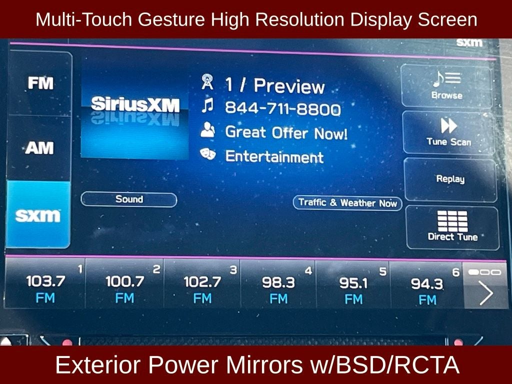 - Radio: Subaru STARLINK 6.5" Multimedia Plus System -inc: AM/FM stereo, HD Radio, single disc CD player w/MP3/WMA/CRR/RW file capability, multi-touch gesture high resolution display screen, voice activated controls, Bluetooth audio streaming and hands-free phone connectivity, Bluetooth hands-free SMS text messaging connectivity, iPod control capability, SiriusXM All Access Radio (4 months free trial/subscription required after), SiriusXM Travel Link (4 months free trial/subscription required after), smartphone integration: AHA, Android Auto, CarPlay, Pandora and STARLINK cloud applications, USB audio system update, steering wheel audio and Bluetooth control switches, 6 speakers (2 dash panel tweeter, 2 front door and 2 rear door), 3.5mm auxiliary input jack and front dual USB A input/charge ports
